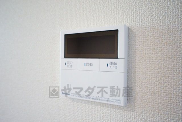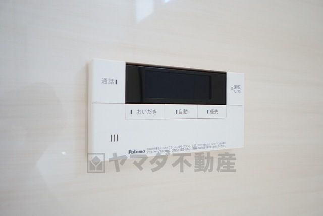 キッチン横からお湯張り、追い炊き、足し湯がボタン一つで楽々操作できる給湯機リモコンです。忙しい夕飯準備の時間帯に重宝しますね。