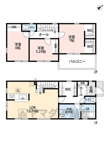 LDK15.7畳(1F)、洋5.2畳(2F)、洋6畳(2F)、洋7畳(2F) |