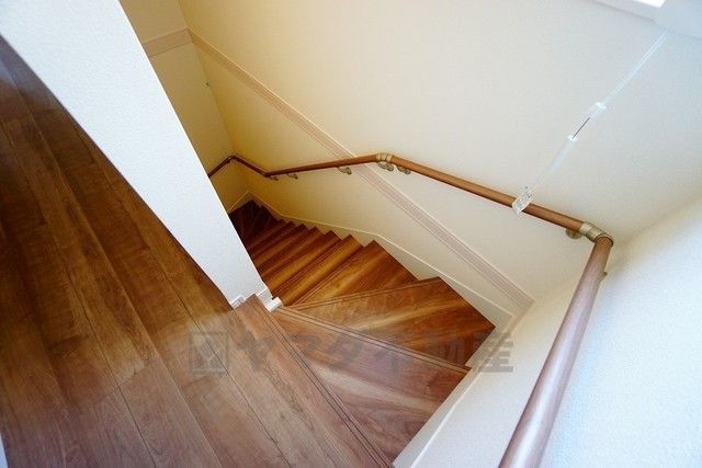 同仕様写真。小さなお子様やご高齢の方でも安心できる、手すり付き階段。段差も低めで設定されており、安全性にも優れています。