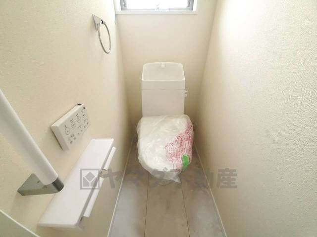 温水洗浄機付トイレです。節水機能もあるので、安心して使えますね。もちろん、1階2階の2ヶ所にトイレがあるので、忙しい朝にもゆとりができますね。