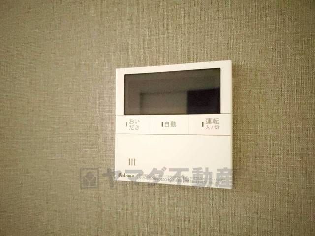 キッチン横からお湯張り、追い炊き、足し湯がボタン一つで楽々操作できる給湯機リモコンです。忙しい夕飯準備の時間帯に重宝しますね。