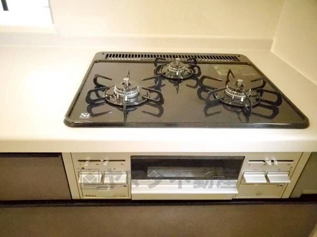 同時にたくさんの料理が調理できる3口コンロ。長時間熱を通しておきたい煮込み料理を作りながら、炒め物など同時進行で進められます。