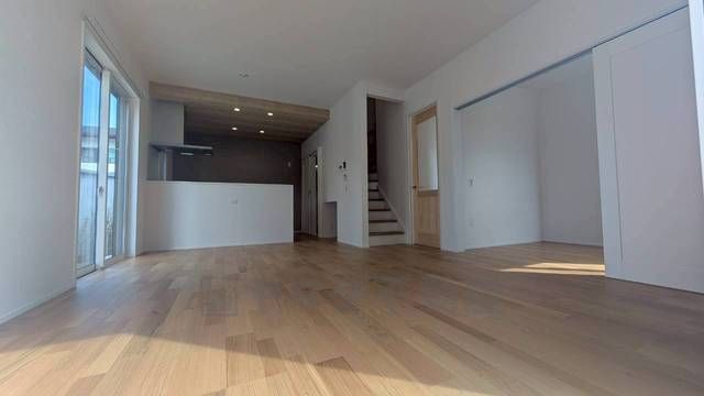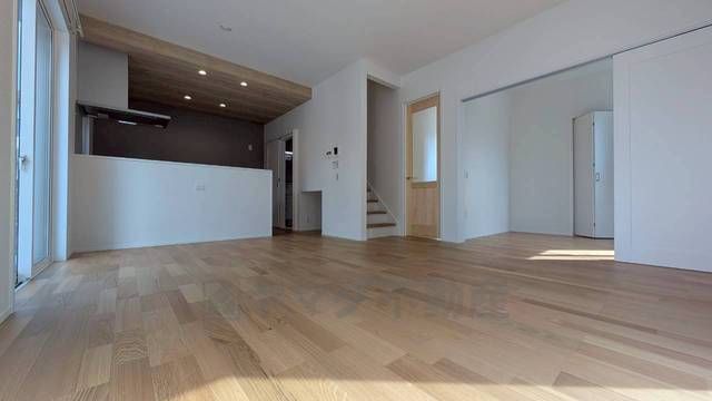大きな窓のあるリビングは、陽光あふれる明るい空間です。居心地良く、ご家族皆がゆったり寛げる憩いの空間となりそうです。
