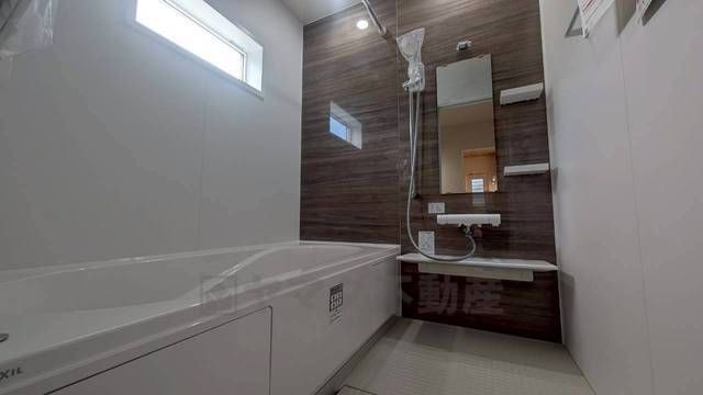 1日の疲れを癒すくつろぎのバスルーム。足を伸ばしてもゆったりと入れるサイズです。お子様と一緒にお風呂に入っても狭くないですね^^