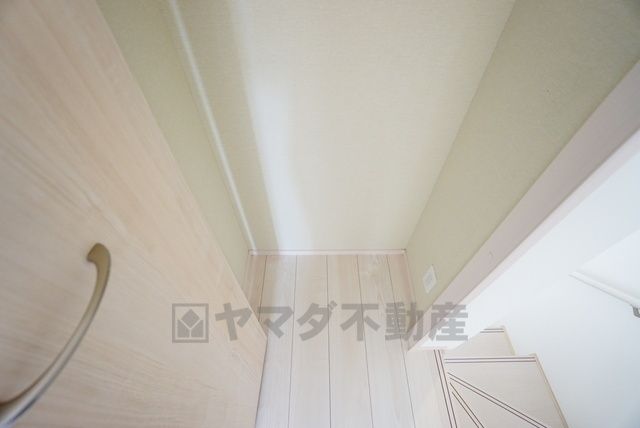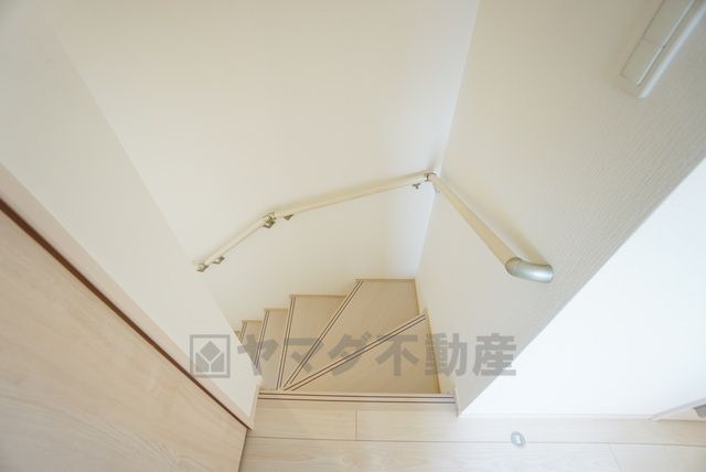小さなお子様やご高齢の方でも安心できる、手すり付き階段。段差も低めで設定されており、安全性にも優れています。