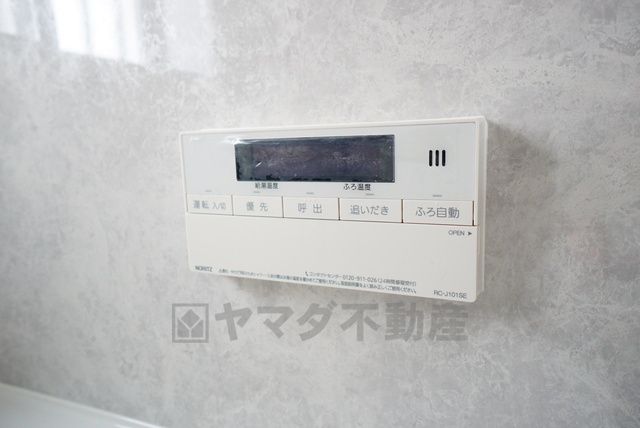 キッチン横からお湯張り、追い炊き、足し湯がボタン一つで楽々操作できる給湯機リモコンです。忙しい夕飯準備の時間帯に重宝しますね。