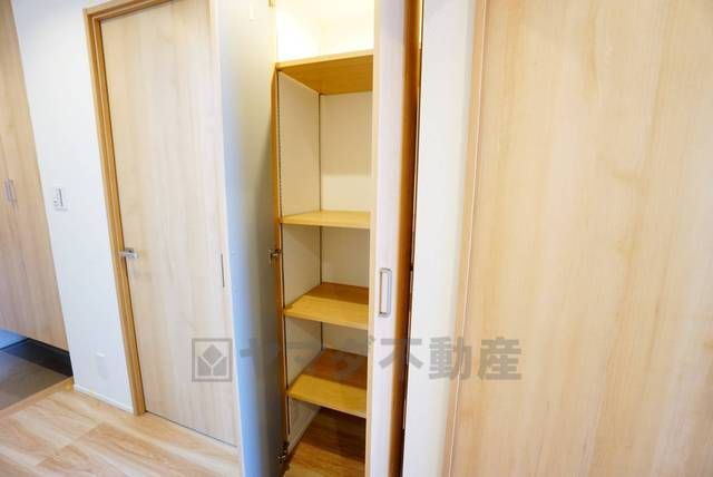 ストックやアルバム、たまにしか見ない書類などの収納に便利な廊下収納。扉付きなので見た目もスッキリ^^