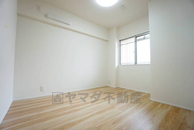 明るい洋室です。ナチュラル色のフローリングで開放的な優しい雰囲気になっています^^ベッドや机、TVを置いてもゆとりのある広さです。