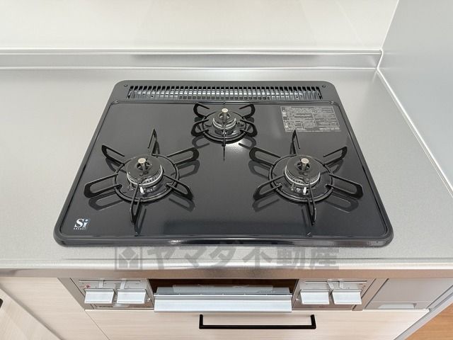 同時にたくさんの料理が調理できる3口コンロ。長時間熱を通しておきたい煮込み料理を作りながら、炒め物など同時進行で進められます。