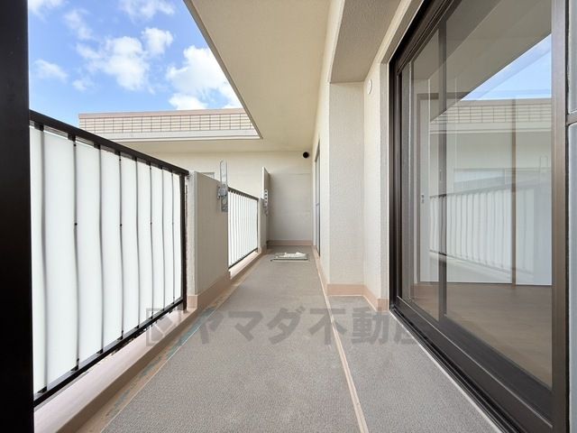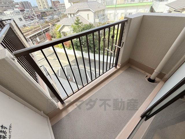 リビングにつながるバルコニーです。3面バルコニーで明るい住戸。外に一時的にゴミを置くこともでき、室内を清潔に保てます。