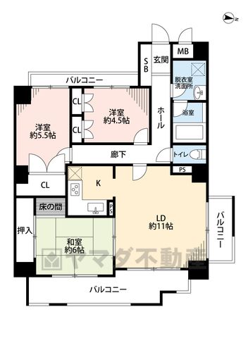 LDK11畳、和6畳、洋4.5畳、洋5.5畳 |