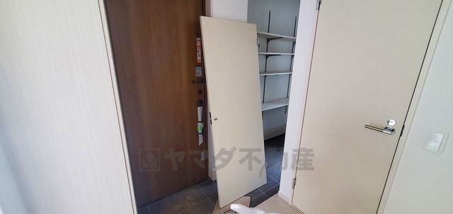 採光も考えられた明るい玄関です。シューズボックスは全身鏡付きで、お出かけ前にコーディネートのチェックが出来ますね。