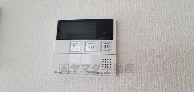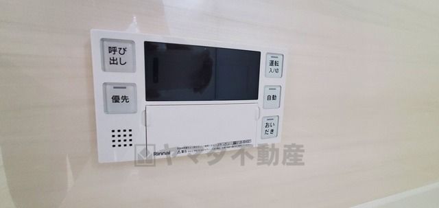 キッチン横からお湯張り、追い炊き、足し湯がボタン一つで楽々操作できる給湯機リモコンです。忙しい夕飯準備の時間帯に重宝しますね。