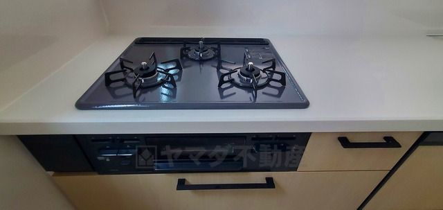 同時にたくさんの料理が調理できる3口コンロ。長時間熱を通しておきたい煮込み料理を作りながら、炒め物など同時進行で進められます。