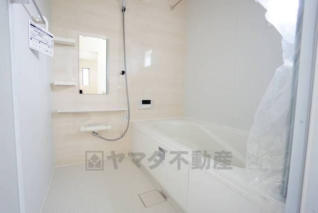 1日の疲れを癒すくつろぎのバスルーム。足を伸ばしてもゆったりと入れるサイズです。お子様と一緒にお風呂に入っても狭くないですね^^