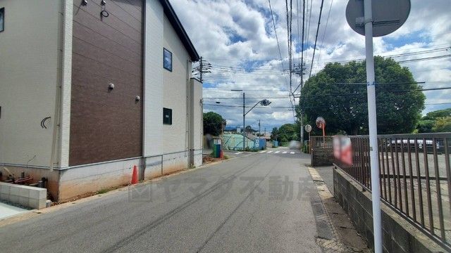 現地(2025年9月24日)撮影。前面道路は広く、車同士がすれ違うスペースが十分にあります。落ち着いた住宅地内で快適な生活を実現してみませんか^^