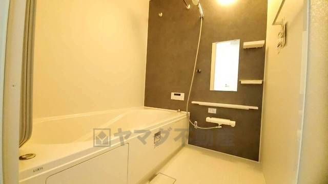 1日の疲れを癒すくつろぎのバスルーム。足を伸ばしてもゆったりと入れるサイズです。お子様と一緒にお風呂に入っても狭くないですね^^