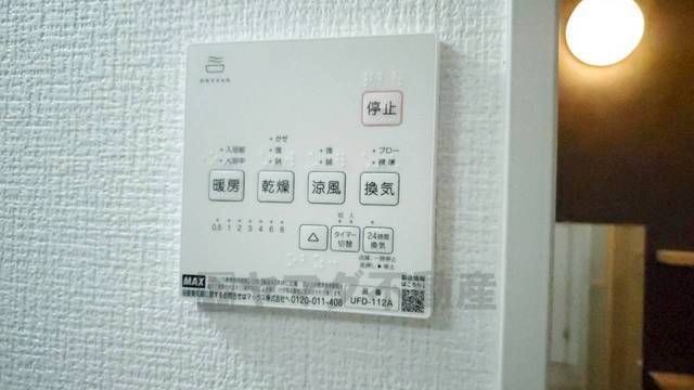 雨の日の洗濯も安心できる浴室暖房乾燥機付き浴室。リモコンで操作もボタン1つで簡単。