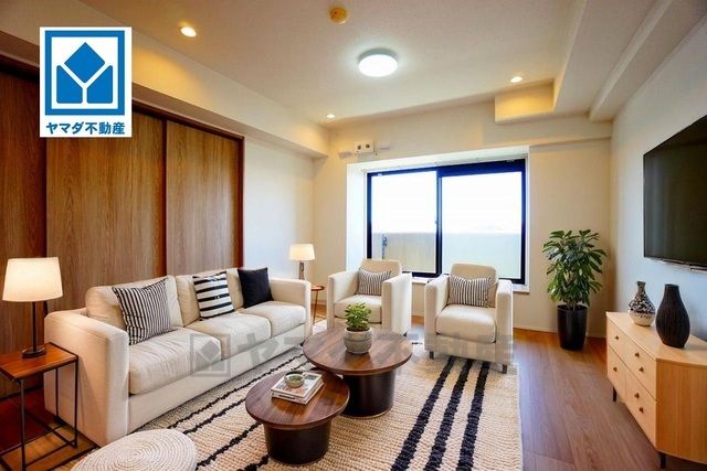 家具はイメージです。大きな窓のあるリビングは、陽光あふれる明るい空間です。居心地良く、ご家族皆がゆったり寛げる憩いの空間となりそうです。