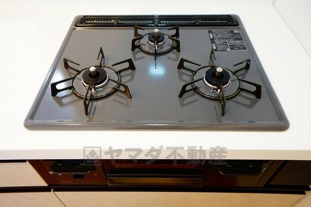 同時にたくさんの料理が調理できる3口コンロ。長時間熱を通しておきたい煮込み料理を作りながら、炒め物など同時進行で進められます。