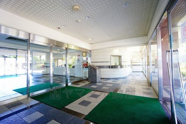 エントランスのドアは全面ガラス張り。スタイリッシュでオフィスビルのような雰囲気ですね。自動ドアと出入り口に段差のないバリアフリー対応です。