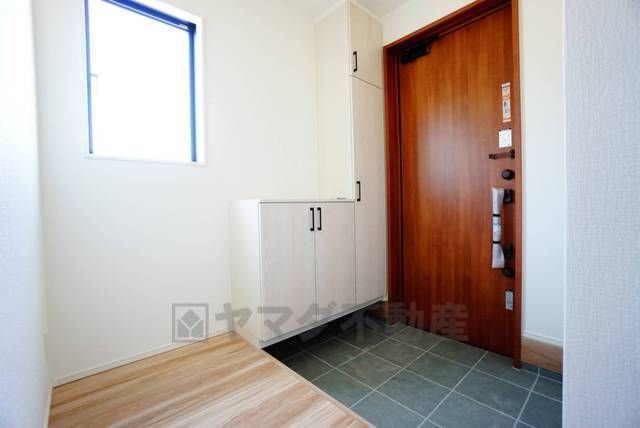 玄関ホールに収納スペースを確保。日用品や趣味の道具入れとして便利です。扉付きなので見た目もスッキリ^^