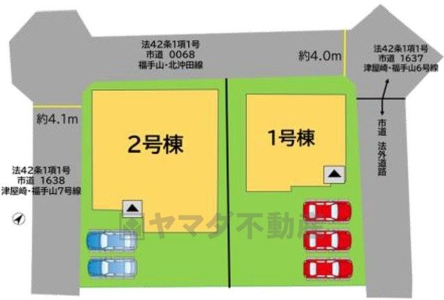 公道 北西 幅員4m 公道 北東 幅員0m |