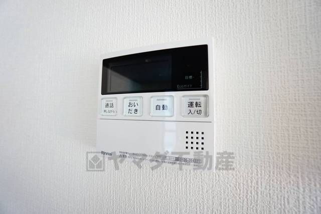 キッチン横からお湯張り、追い炊き、足し湯がボタン一つで楽々操作できる給湯機リモコンです。忙しい夕飯準備の時間帯に重宝しますね。