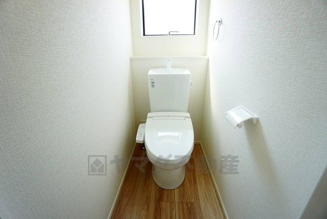 温水洗浄機付トイレです。節水機能もあるので、安心して使えますね。もちろん、1階2階の2ヶ所にトイレがあるので、忙しい朝にもゆとりができますね。