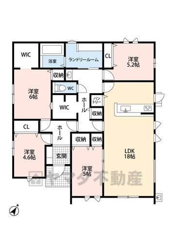 LDK18畳(1F)、洋5畳(1F)、洋4.6畳(1F)、洋5.2畳(1F)、洋6畳(1F) |