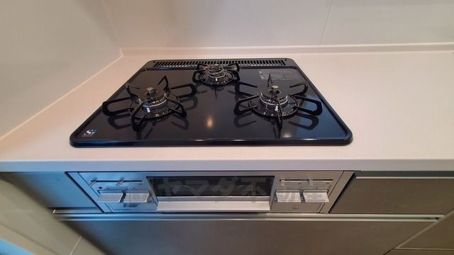 同時にたくさんの料理が調理できる3口コンロ。長時間熱を通しておきたい煮込み料理を作りながら、炒め物など同時進行で進められます。