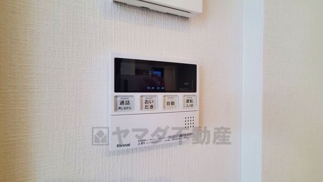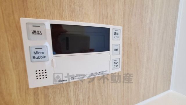 キッチン横からお湯張り、追い炊き、足し湯がボタン一つで楽々操作できる給湯機リモコンです。忙しい夕飯準備の時間帯に重宝しますね。
