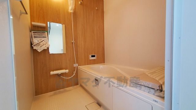 1日の疲れを癒すくつろぎのバスルーム。足を伸ばしてもゆったりと入れるサイズです。お子様と一緒にお風呂に入っても狭くないですね^^