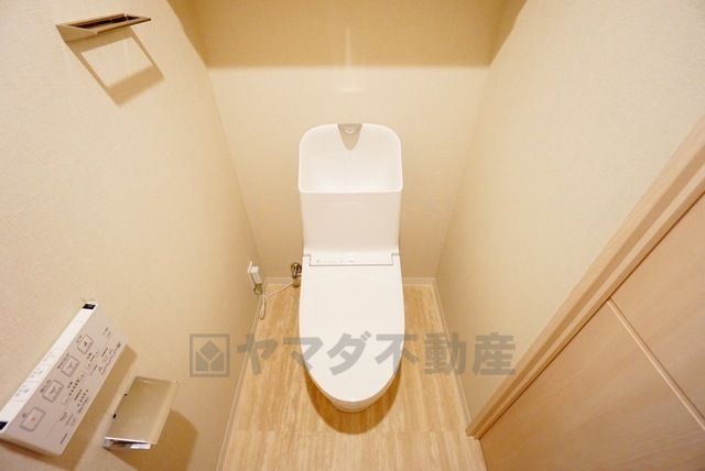 温水、暖房、ウォシュレット付の高機能トイレです。棚を設置して観葉植物や写真等を飾ればステキな空間になりそうです^^