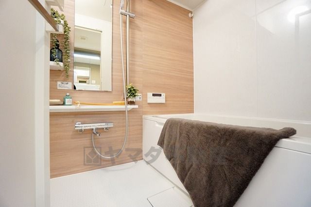 浴室暖房乾燥機付き。天候に左右されず、いつでも好きなときに洗濯物を干せるので、仕事や家事で忙しい方に重宝します。