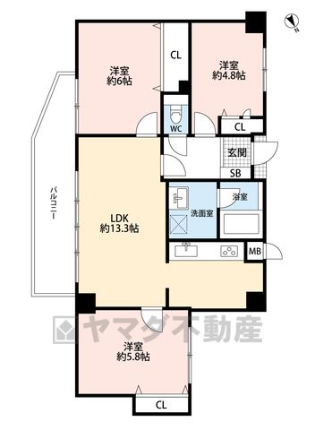LDK13.3畳、洋4.8畳、洋5.8畳、洋6畳 |