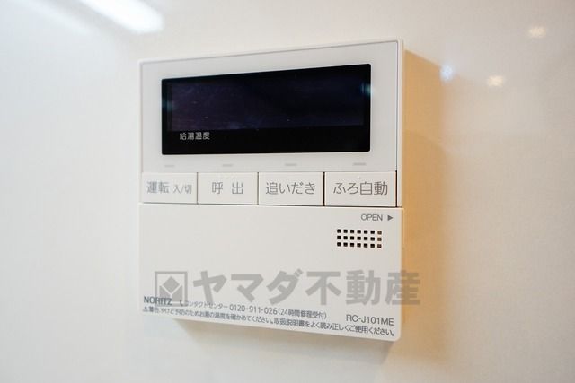 キッチン横からお湯張り、追い炊き、足し湯がボタン一つで楽々操作できる給湯機リモコンです。忙しい夕飯準備の時間帯に重宝しますね。