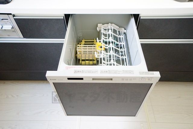 食事の後の手間を解消する食器洗い乾燥機付。冬場の洗い物で手荒れの悩みもなくなります。手洗いよりも節約できて便利。