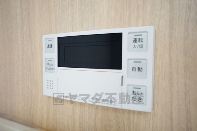 キッチン横からお湯張り、追い炊き、足し湯がボタン一つで楽々操作できる給湯機リモコンです。忙しい夕飯準備の時間帯に重宝しますね。