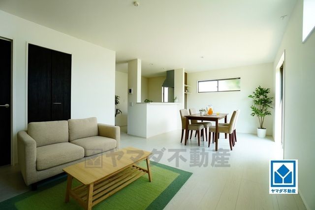 家具はイメージです。リビングは広々とした設計で、家族が集い、寛ぐ暮らしの空間を演出しています。思い思いの時間を過ごしたり、家族みんなで食事をしたり、素敵な団らんの場になりますね。