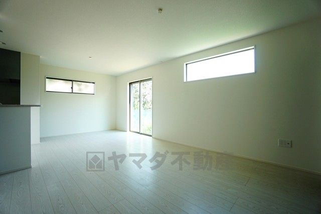 大きな窓のあるリビングは、陽光あふれる明るい空間です。居心地良く、ご家族皆がゆったり寛げる憩いの空間となりそうです。