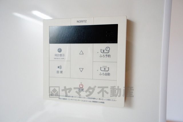 キッチン横からお湯張り、追い炊き、足し湯がボタン一つで楽々操作できる給湯機リモコンです。忙しい夕飯準備の時間帯に重宝しますね。