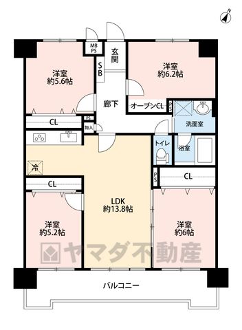 LDK13.8畳、洋5.2畳、洋5.6畳、洋6畳、洋6.2畳 |