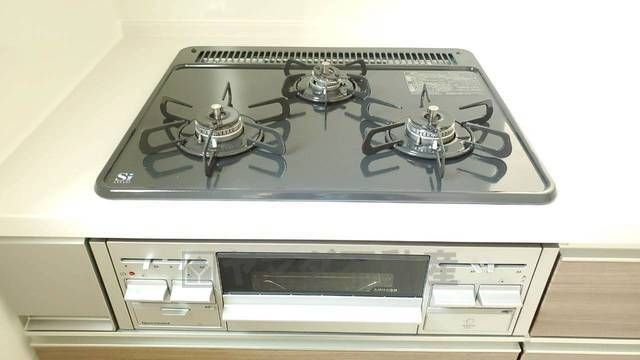 複数の調理を一度に行うことができる3口コンロ。効率よくお料理が出来ます。毎日のお料理も楽しくなりますね^^