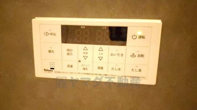 キッチン横からお湯張り、追い炊き、足し湯がボタン一つで楽々操作できる給湯機リモコンです。忙しい夕飯準備の時間帯に重宝しますね。