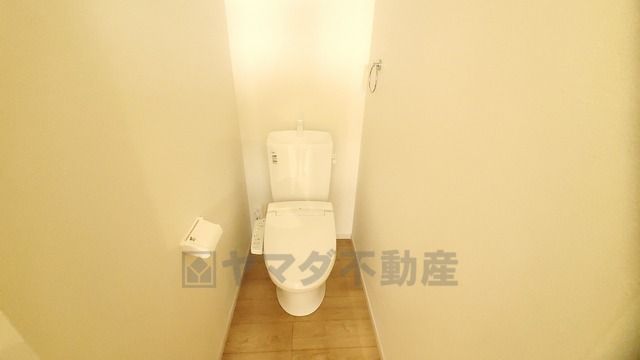 温水洗浄機付トイレです。節水機能もあるので、安心して使えますね。もちろん、1階2階の2ヶ所にトイレがあるので、忙しい朝にもゆとりができますね。