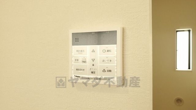 キッチン横からお湯張り、追い炊き、足し湯がボタン一つで楽々操作できる給湯機リモコンです。忙しい夕飯準備の時間帯に重宝しますね。