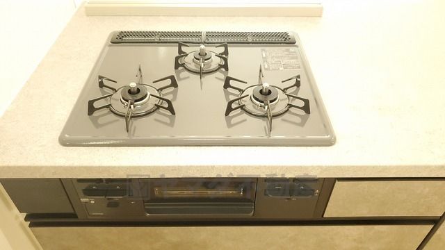 複数の調理を一度に行うことができる3口コンロ。効率よくお料理が出来ます。毎日のお料理も楽しくなりますね^^