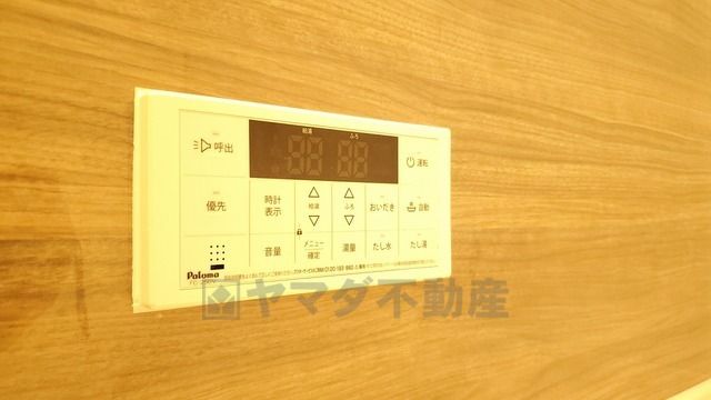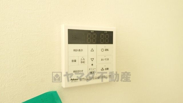キッチン横からお湯張り、追い炊き、足し湯がボタン一つで楽々操作できる給湯機リモコンです。忙しい夕飯準備の時間帯に重宝しますね。