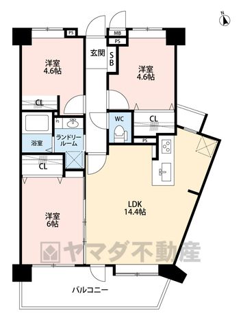 LDK14.4畳、洋4.6畳、洋6畳 |